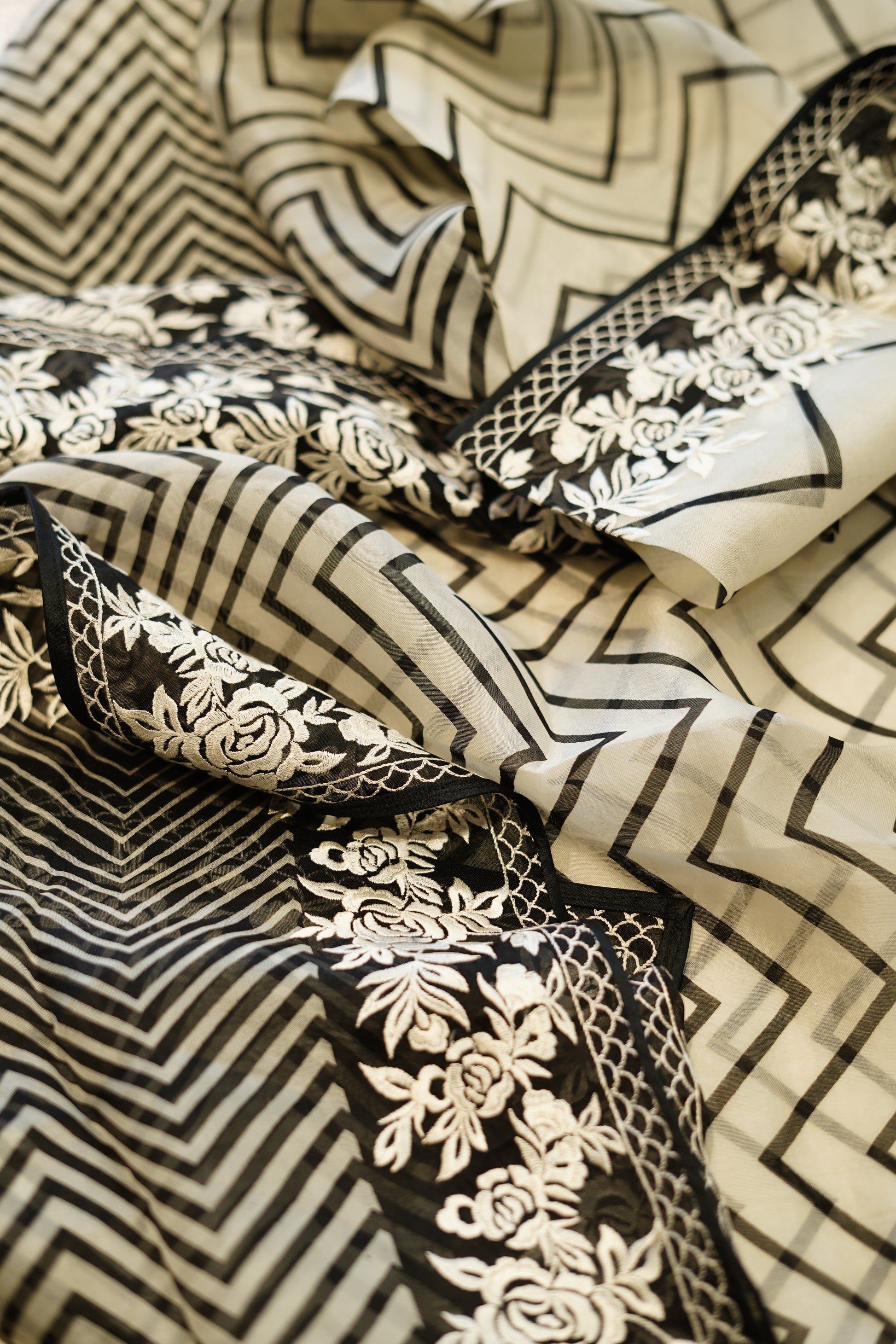 Make a statement with this black silk organza suit, adorned with intricate Parsi embroidery. The matching Parsi-embroidered silk organza dupatta completes the look, perfect for festive occasions and elegant celebrations.