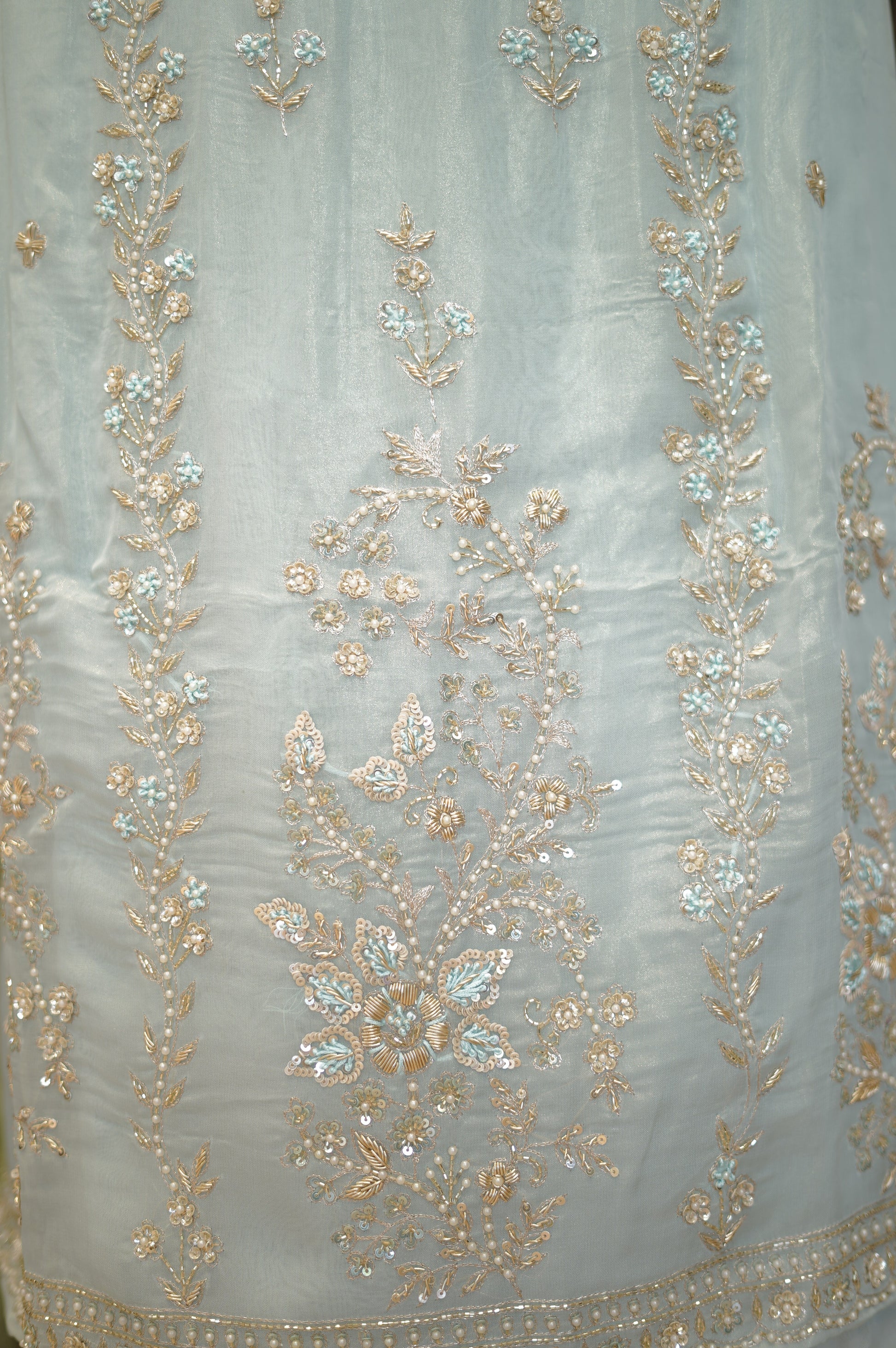 Blue Tissue Organza Suit with Handwork