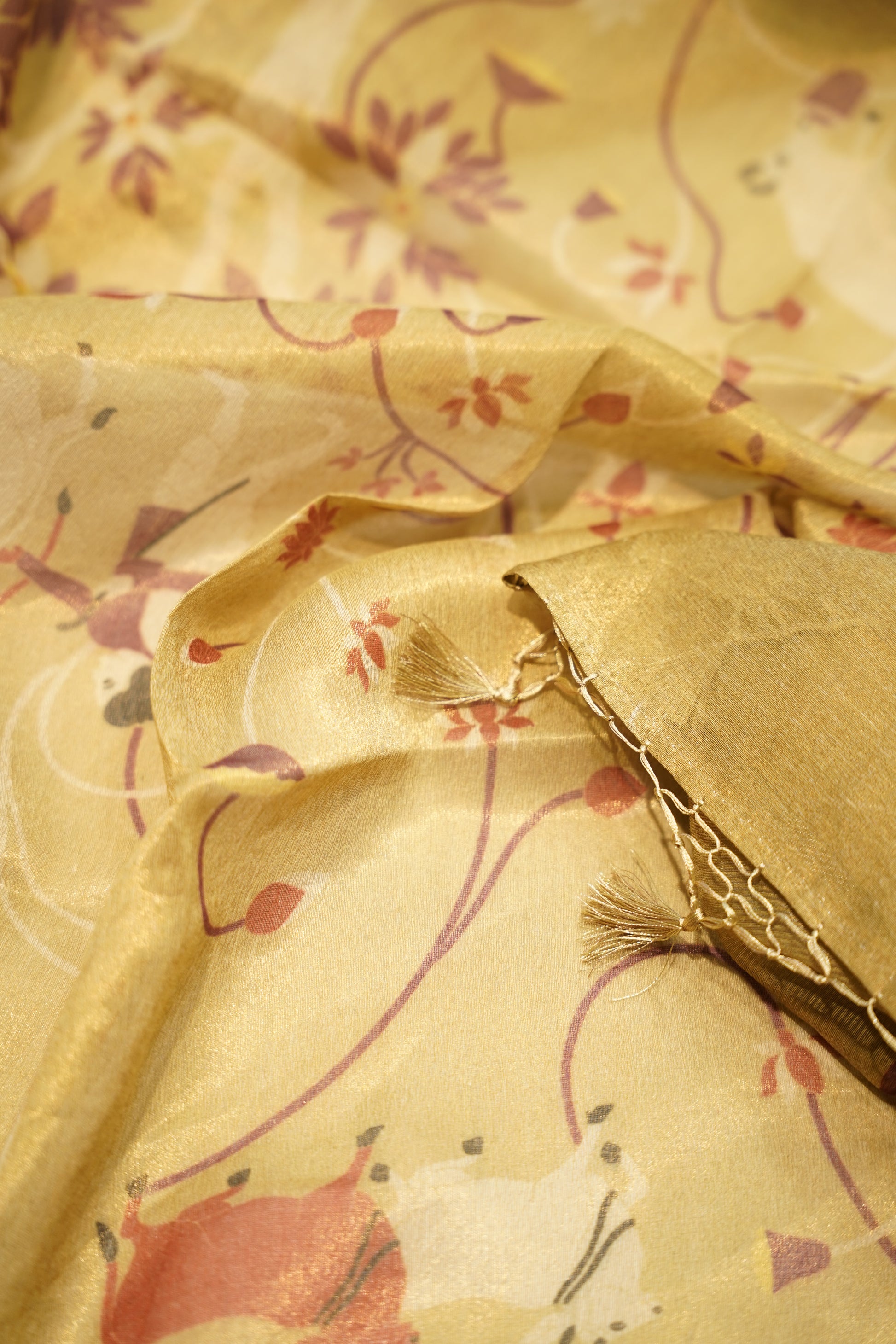 Yellow Pure Silk Tissue Booti Suit