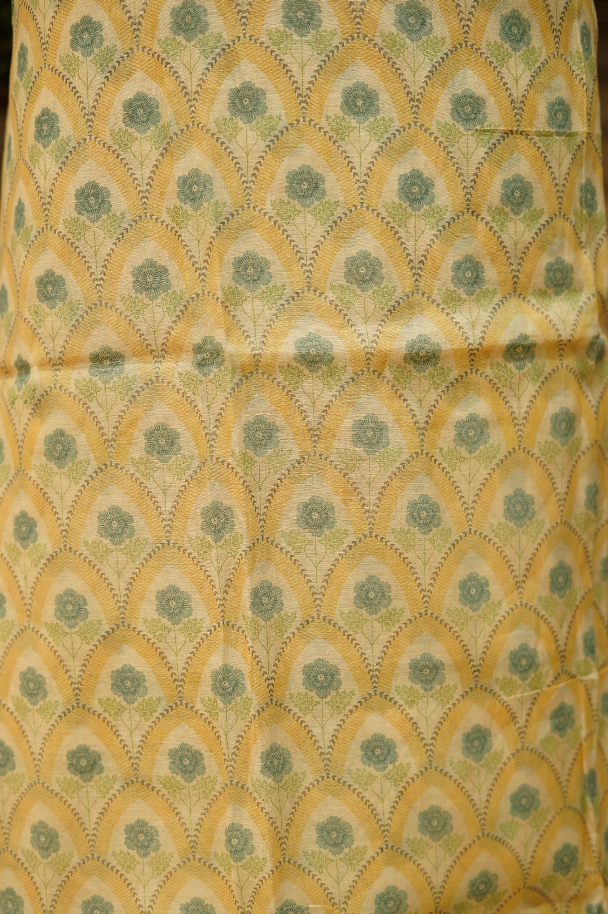 Off White Pure Mul Chanderi Block Printed Suit with Zari Embroidery