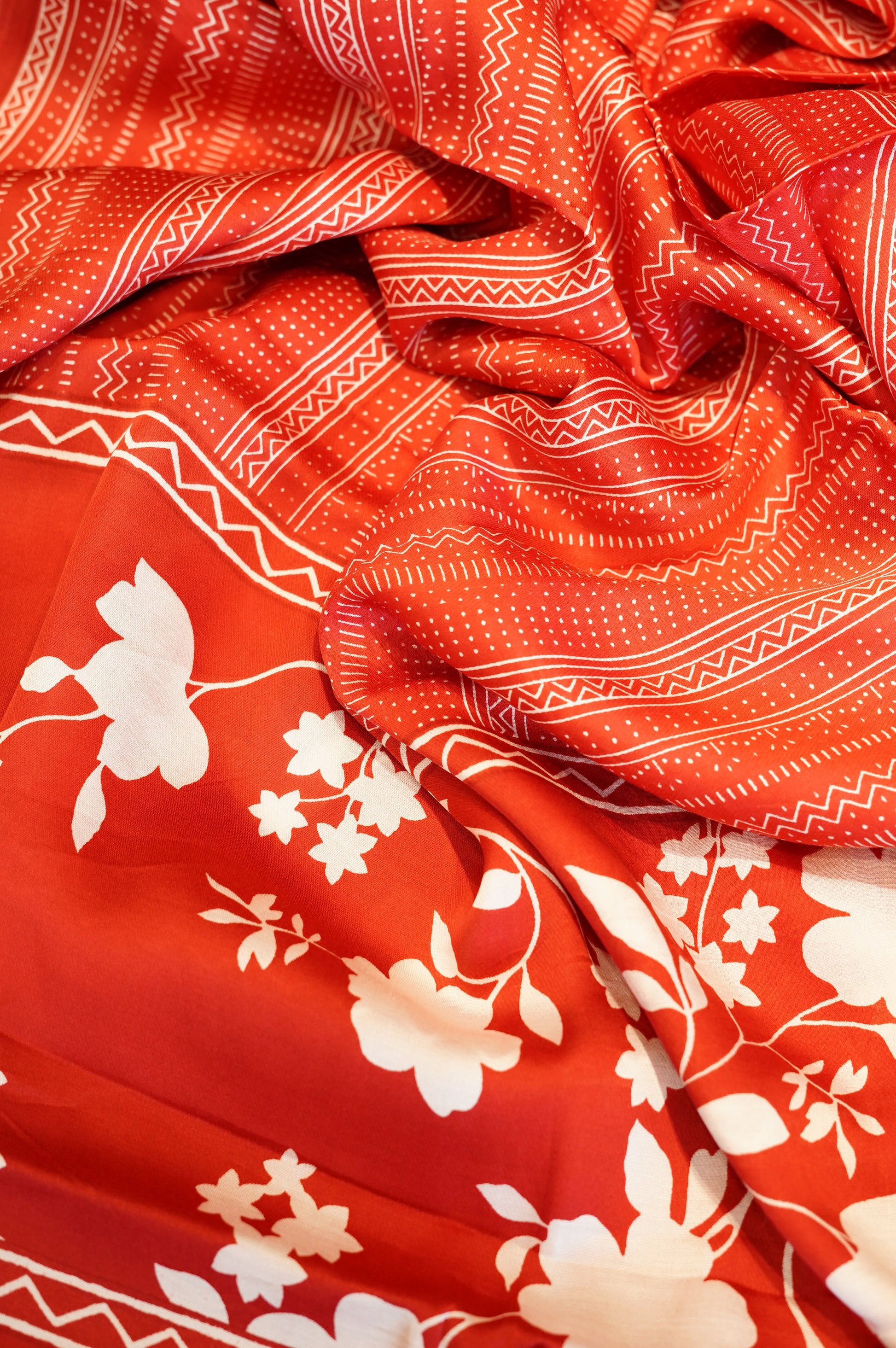Add a vibrant touch to your wardrobe with this Red Modal Printed Suit, crafted from soft, flowing modal fabric adorned with delicate prints. Paired with a matching printed modal dupatta, this ensemble combines comfort with elegance—perfect for festive occasions and casual celebrations.