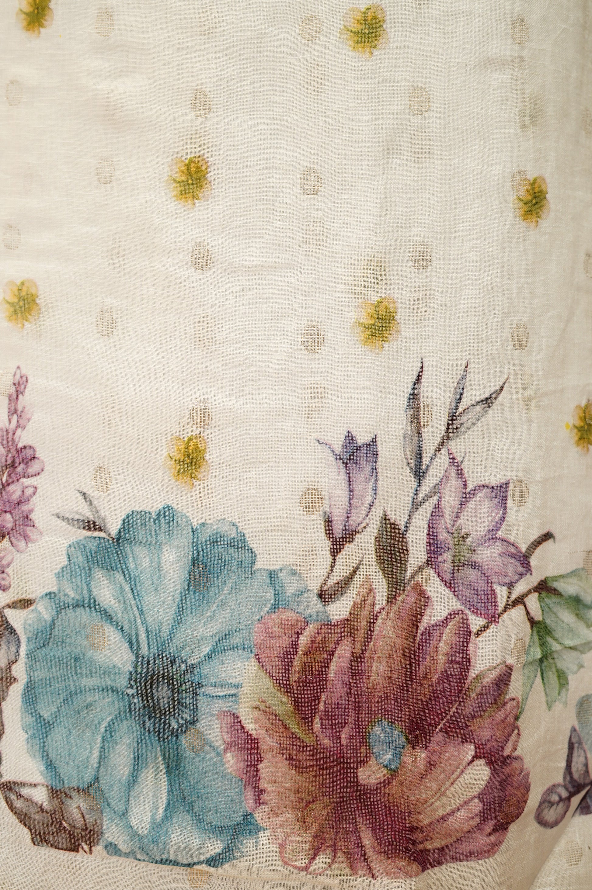 Embrace effortless charm with this Off White Pure Linen Floral Printed Suit, featuring delicate floral prints that add a touch of freshness and elegance. Crafted from soft, breathable pure linen, the suit offers a comfortable fit and graceful drape. It is paired with a matching printed linen dupatta, completing the ensemble with harmonious style. Perfect for casual gatherings and daytime occasions, this suit blends contemporary prints with everyday comfort.