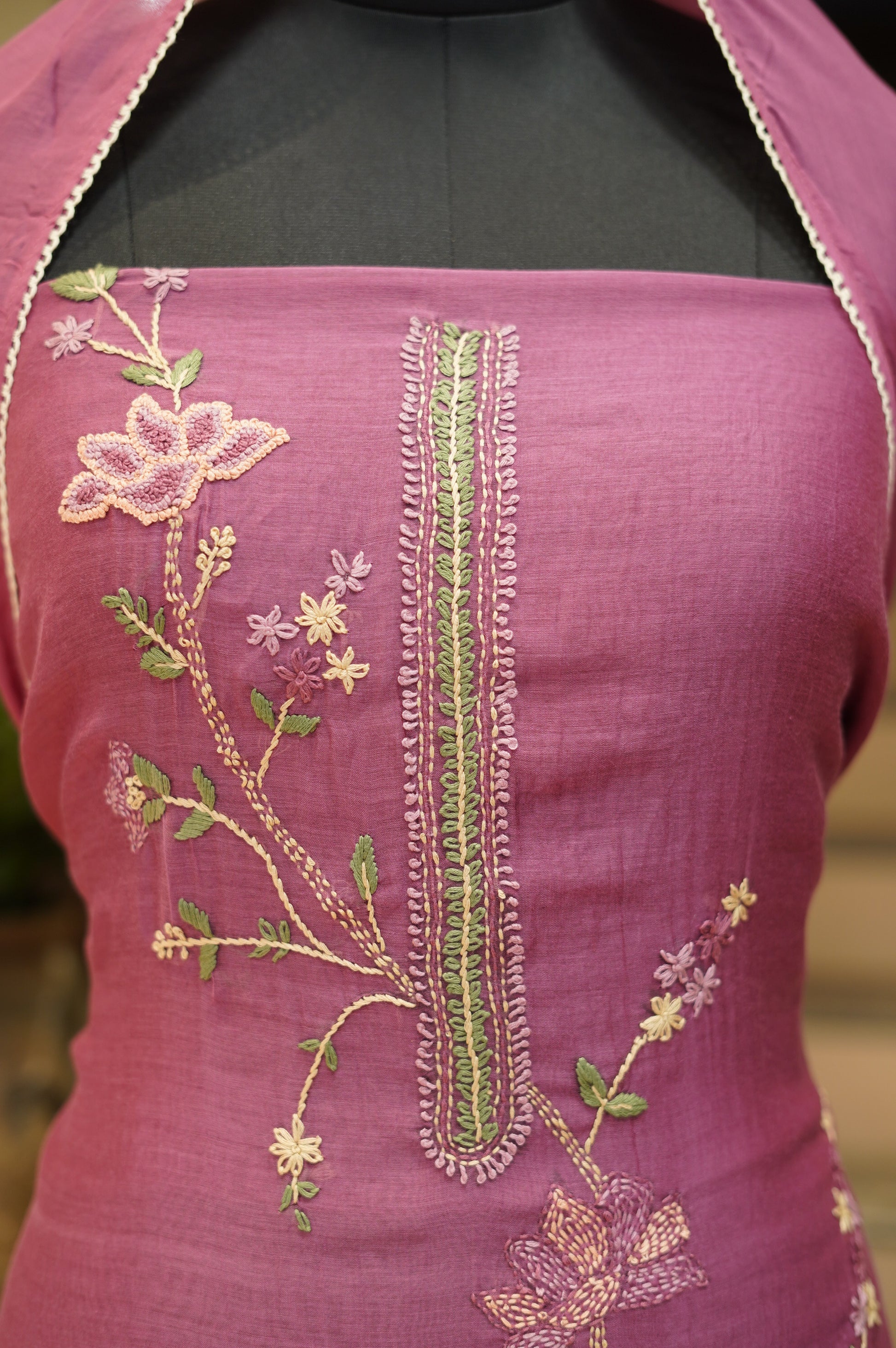 Step into elegance with our Wine Mul Chanderi Suit, featuring intricate hand embroidery for a sophisticated touch. Paired with a matching Mul Chanderi dupatta, this graceful ensemble combines traditional craftsmanship with lightweight comfort, perfect for festive occasions and special gatherings.