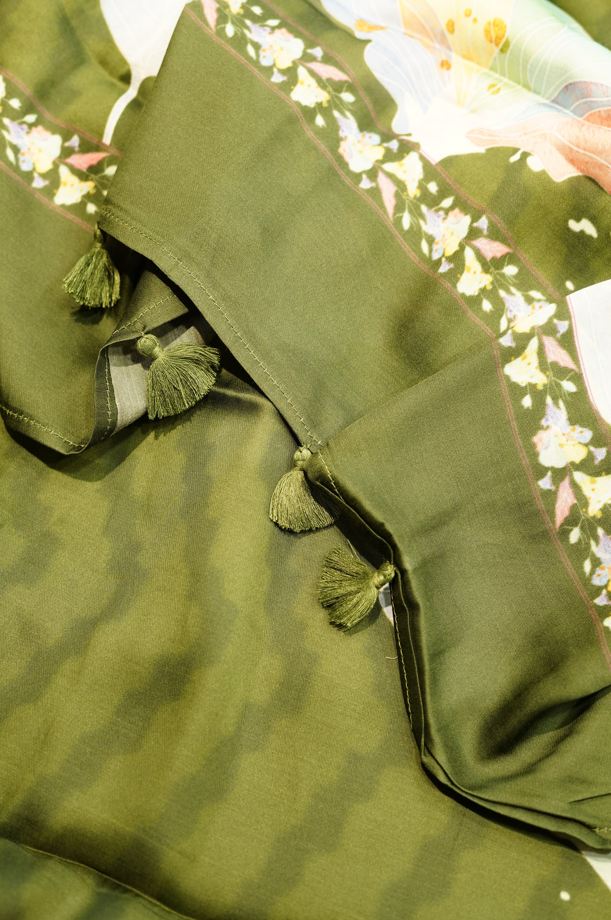Step into graceful style with this Green Modal Silk Printed Suit, crafted from soft, flowing modal silk featuring delicate prints. Paired with a matching modal silk printed dupatta, this ensemble offers a perfect blend of comfort and elegance—ideal for festive occasions and casual celebrations.