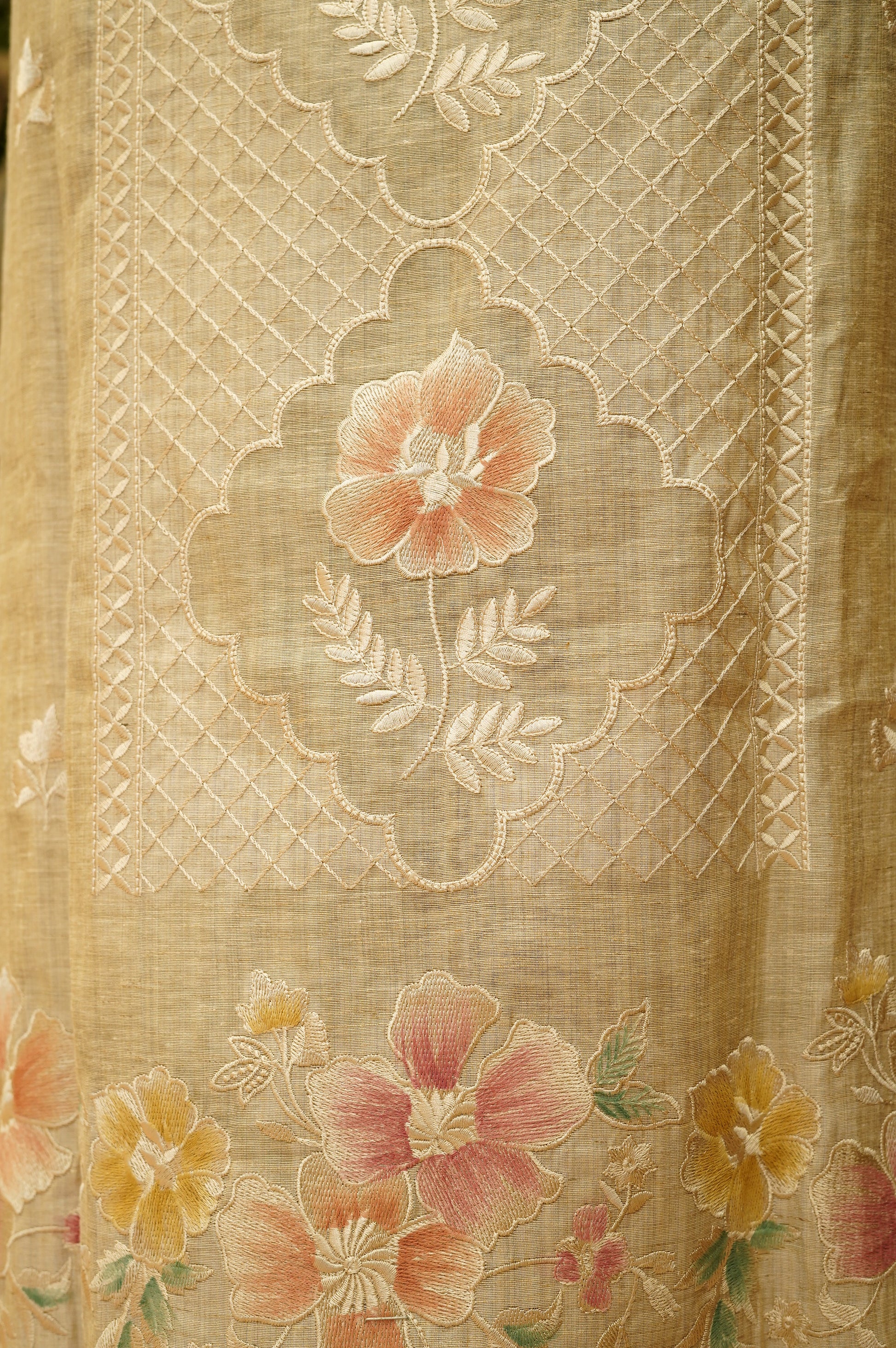 Beige Khadi Chanderi Suit with Embroidery