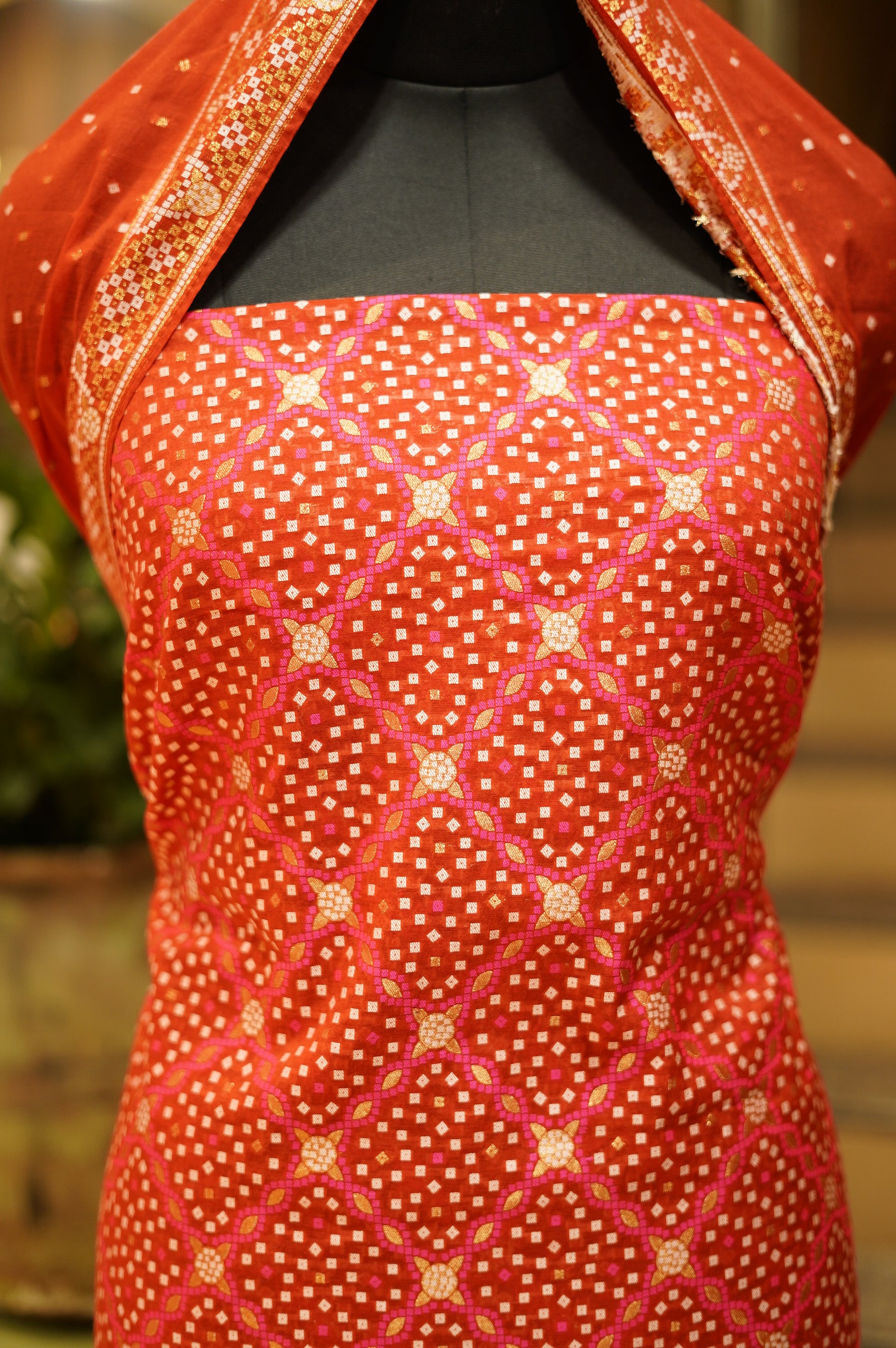Exude festive elegance with this Red Jacquard Chanderi Suit, crafted from luxurious Chanderi fabric with intricate jacquard patterns. Paired with a matching Chanderi jacquard dupatta, this ensemble offers a rich, sophisticated look—perfect for weddings, celebrations, and special occasions.