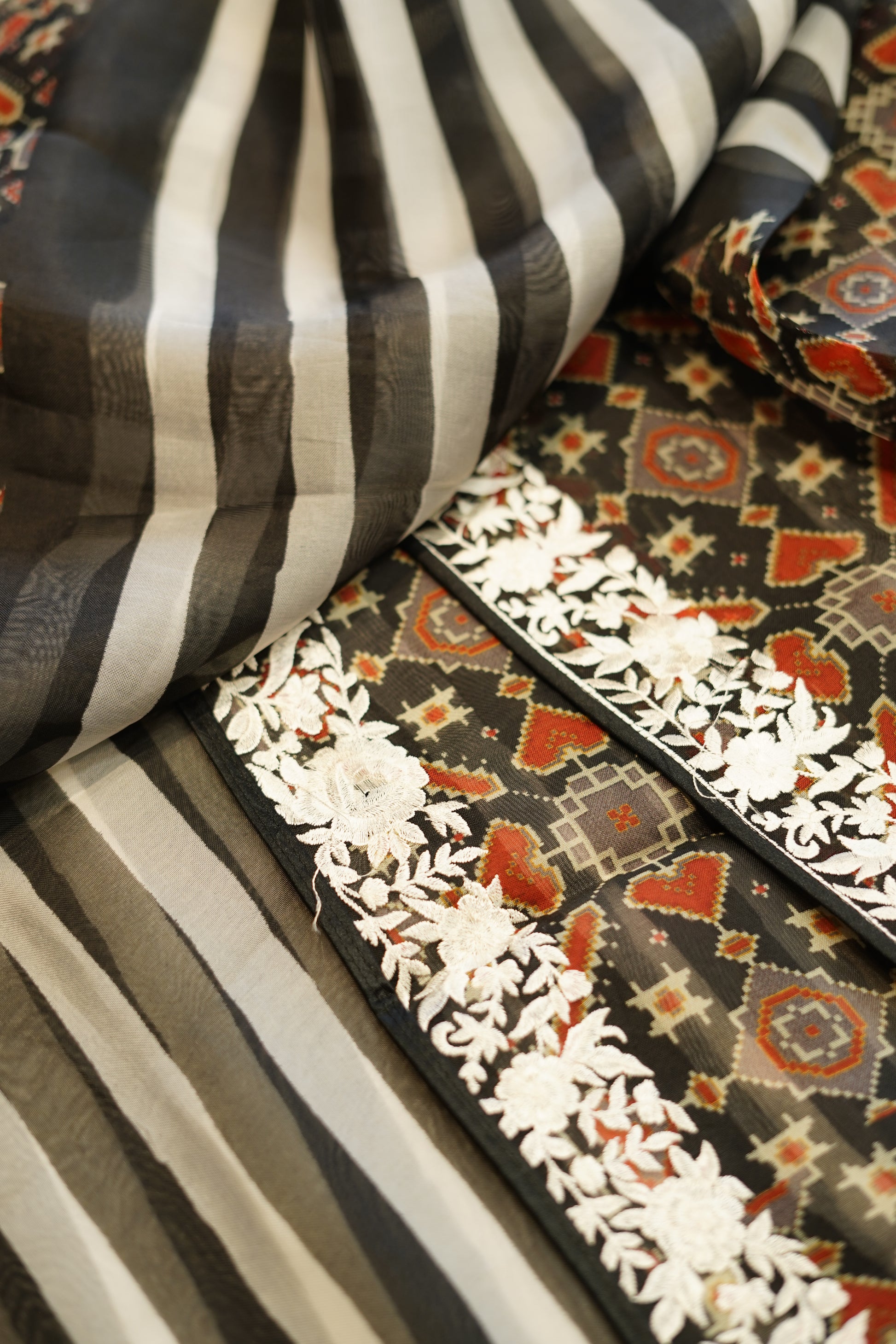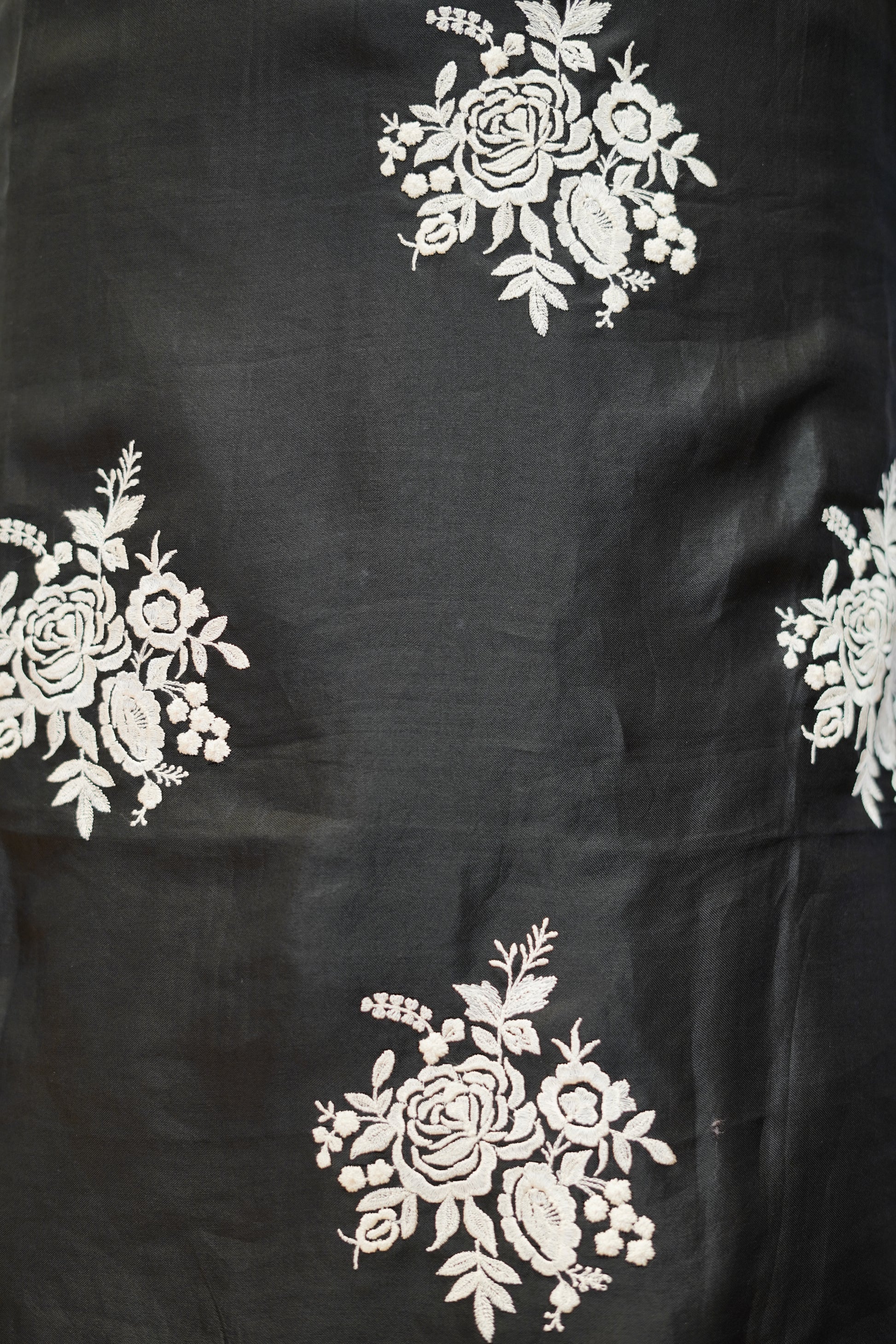 Black Pure Silk Organza Suit with Parsi Embroidery