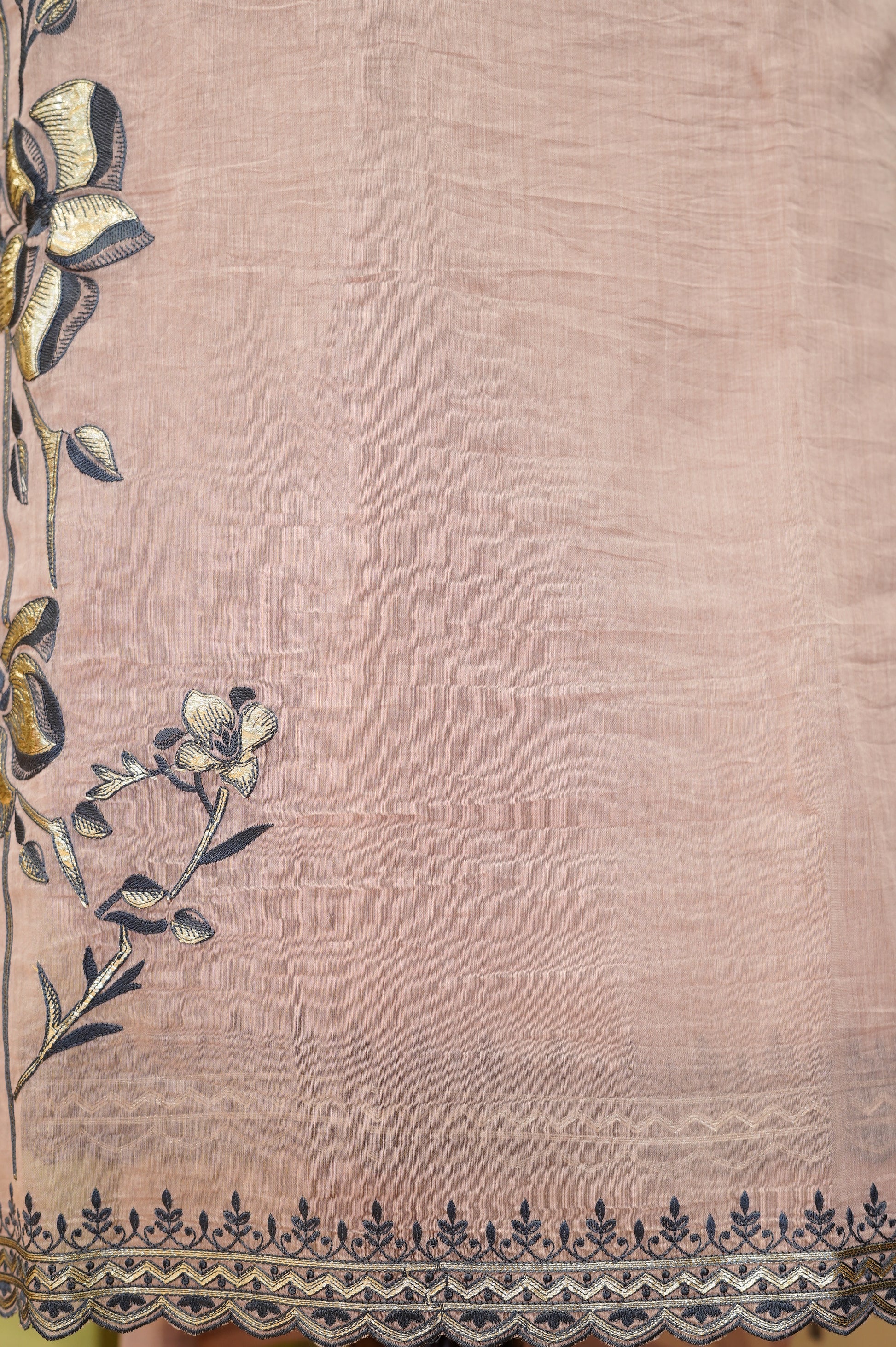 Dusty Pink Mul Chanderi Suit with Foil Applique Embroidery