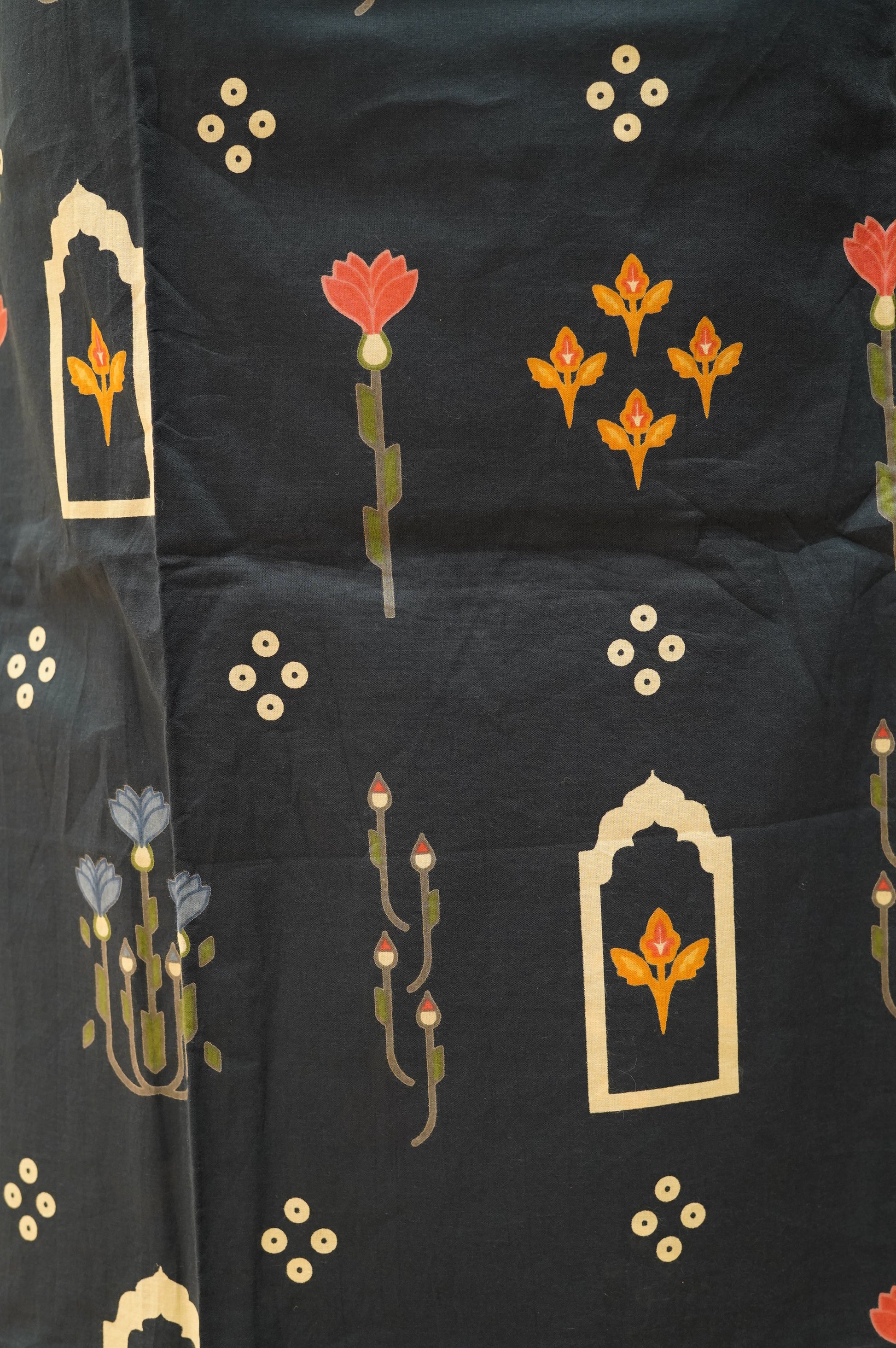 Elevate your style with our Blue Printed Cotton Suit, adorned with delicate mirror work for a subtle sparkle. Paired with a matching cotton dupatta, this elegant ensemble combines comfort and charm—perfect for festive occasions and casual celebrations.