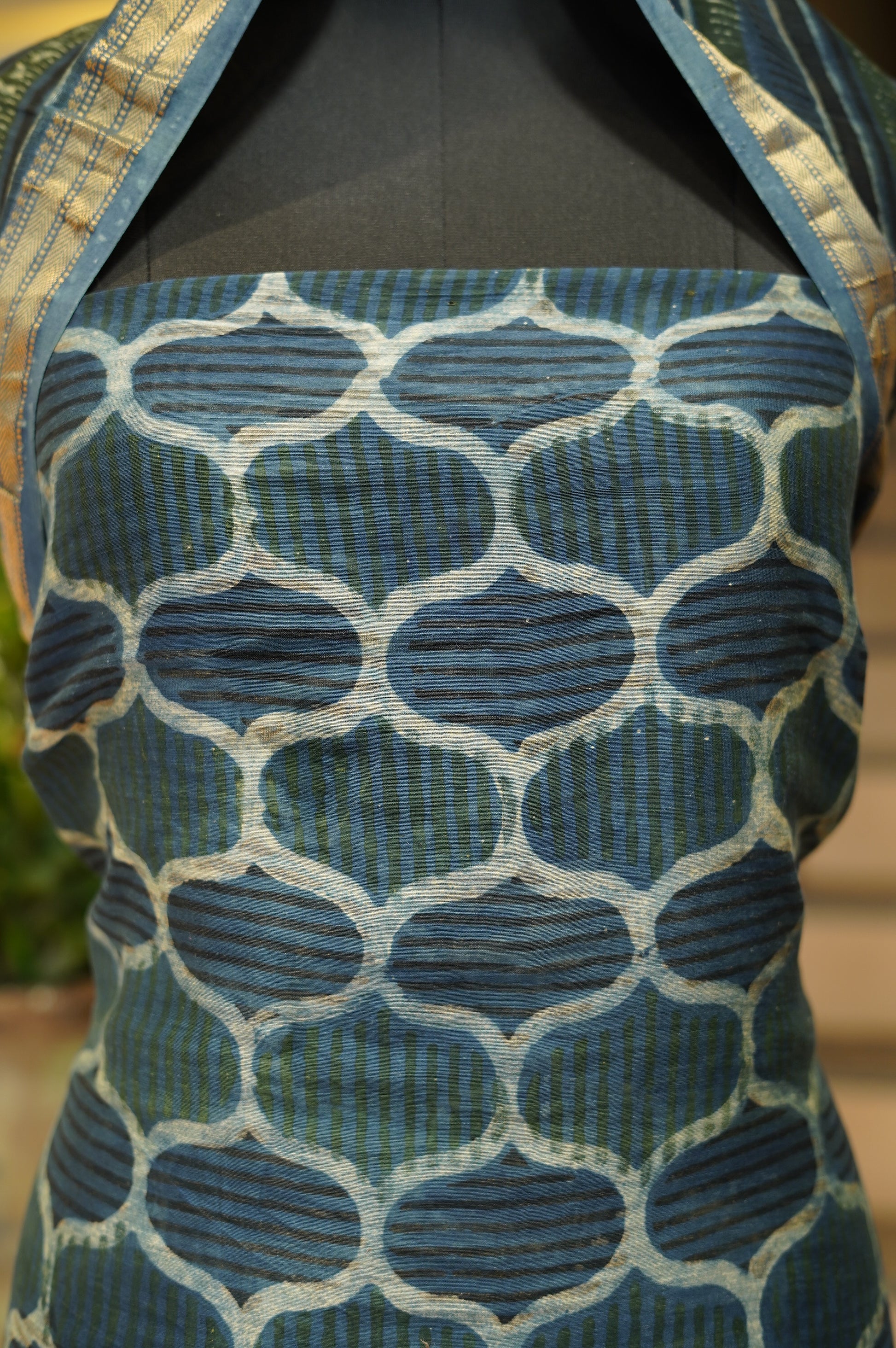 Blue Maheswari Ajrakh Suit