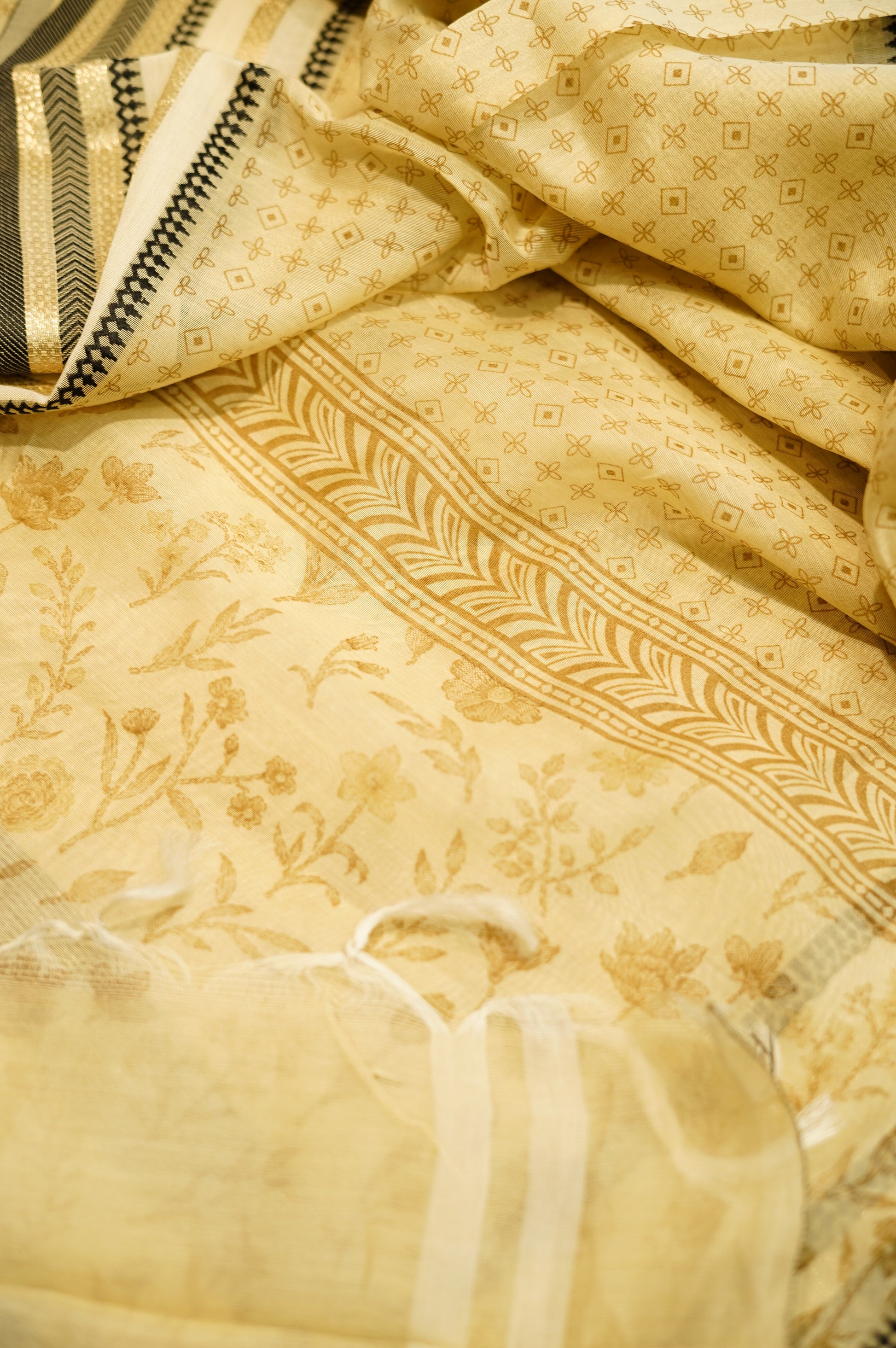 Cream Maheshwari Silk Printed Suit