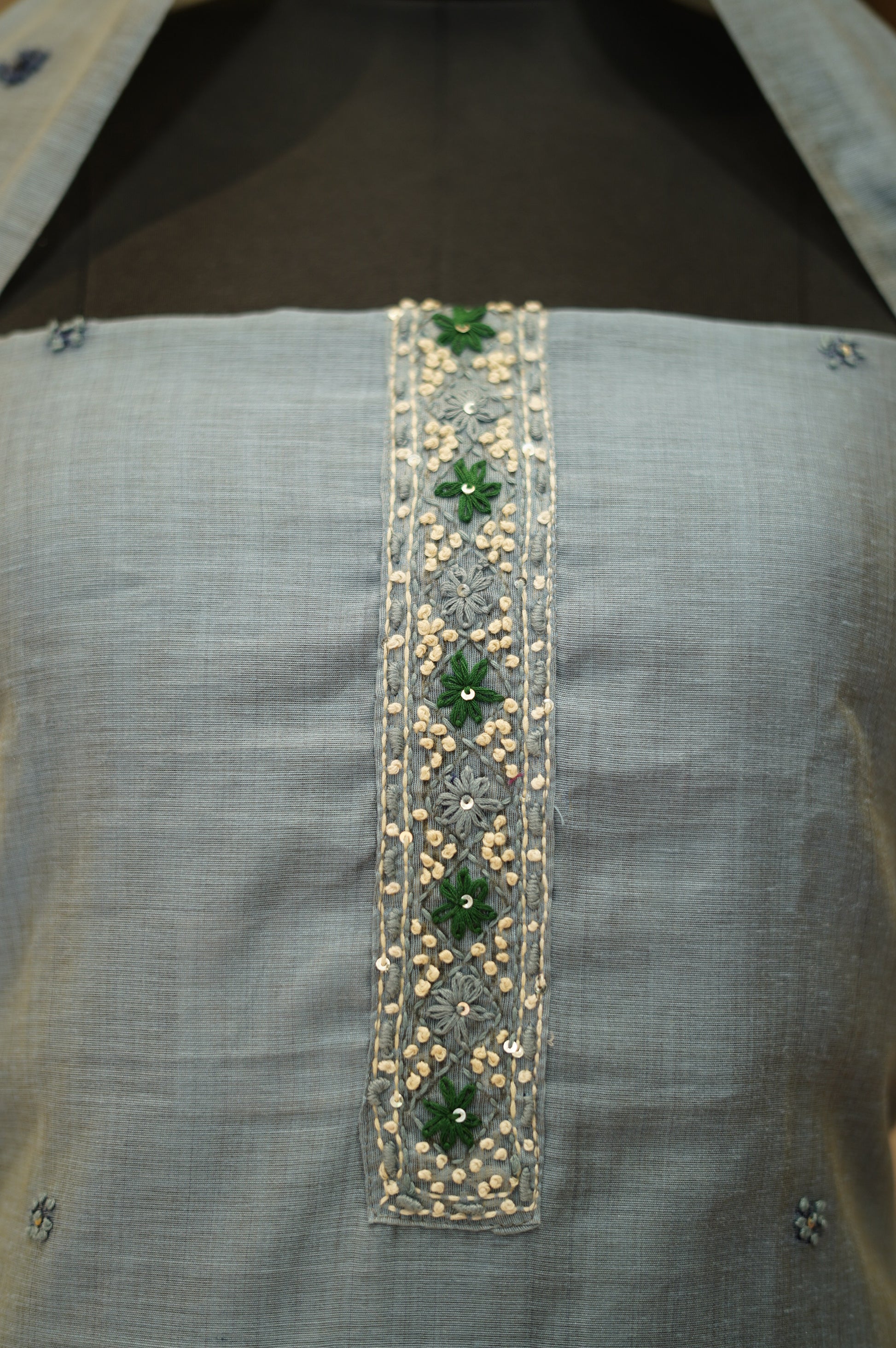 Grey Chanderi Jamdani Suit with Hand Embroidery