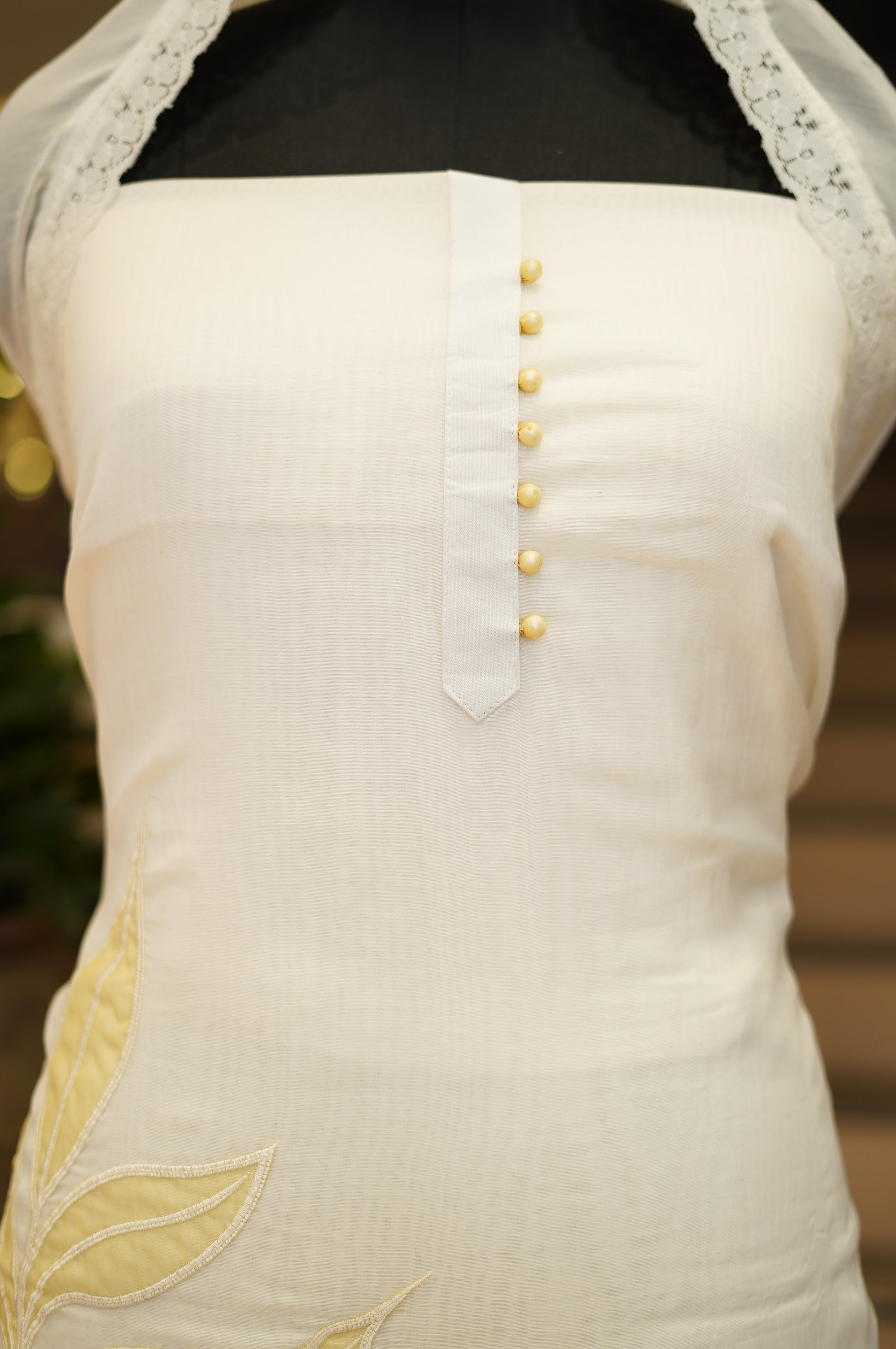 White Mul Chanderi Suit with Applique Work