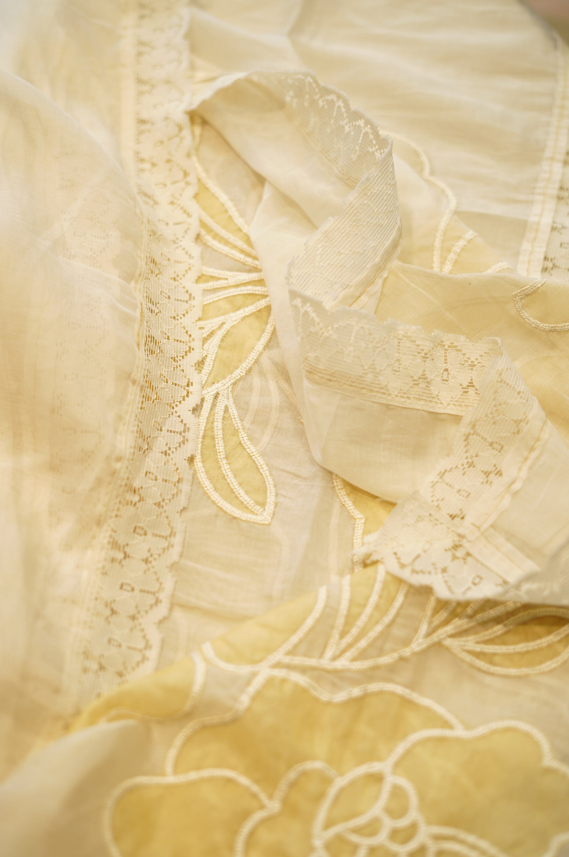 Step into timeless elegance with this White Mul Chanderi Suit, adorned with intricate applique work that adds artisanal charm and subtle sophistication. Crafted from lightweight Mul Chanderi fabric, the suit drapes gracefully for a refined silhouette. It is paired with a Mul Chanderi applique dupatta, completing the ensemble with harmonious style. Perfect for festive occasions and special gatherings, this suit blends traditional craftsmanship with contemporary elegance.