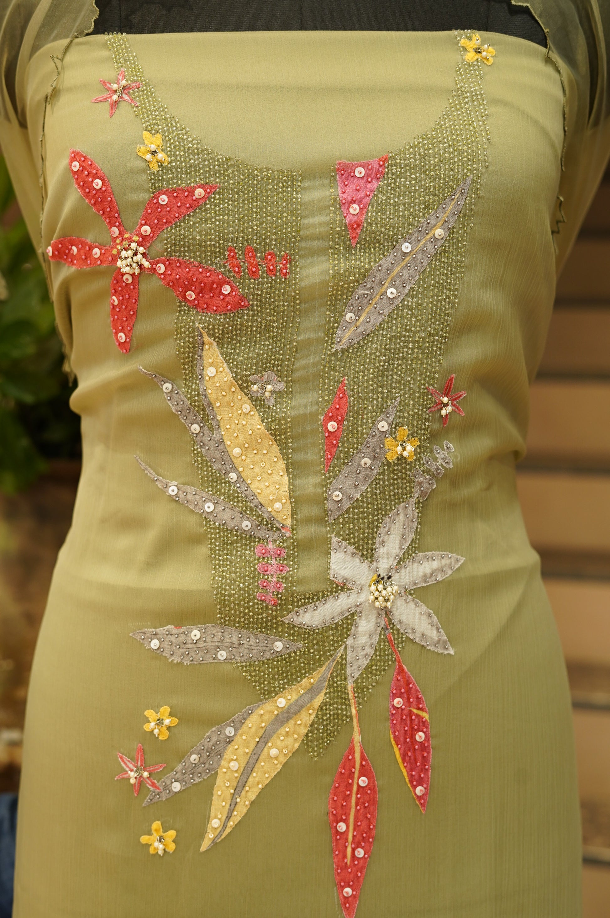 Green Crush Organza Suit with Handwork