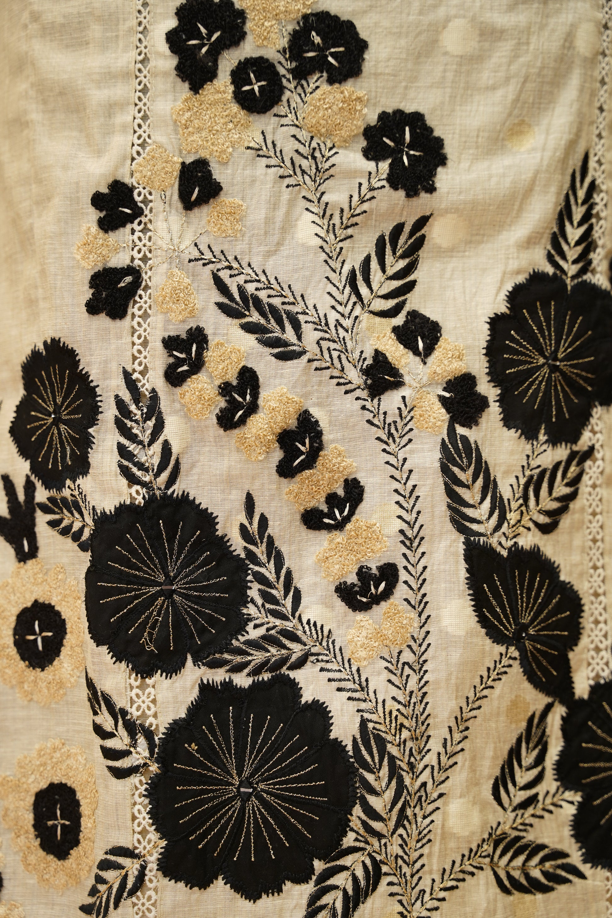Subtle and sophisticated, this beige self Chanderi suit is beautifully enhanced with delicate applique embroidery, offering timeless elegance and comfort.