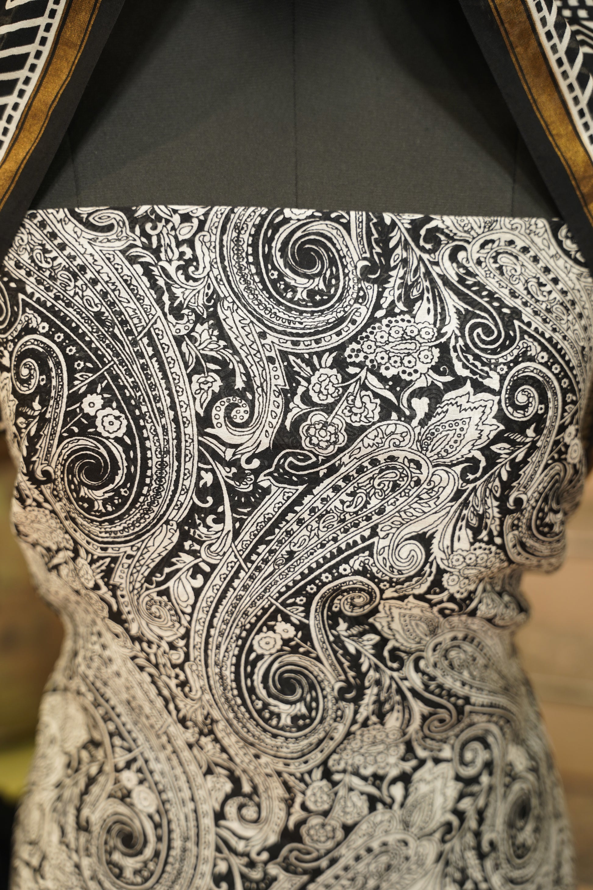 An elegant Maheshwari unstitched suit in classic black, featuring refined prints for a timeless appeal. Paired with a coordinated printed Maheshwari dupatta, this ensemble is a perfect choice for festive celebrations and sophisticated everyday wear.