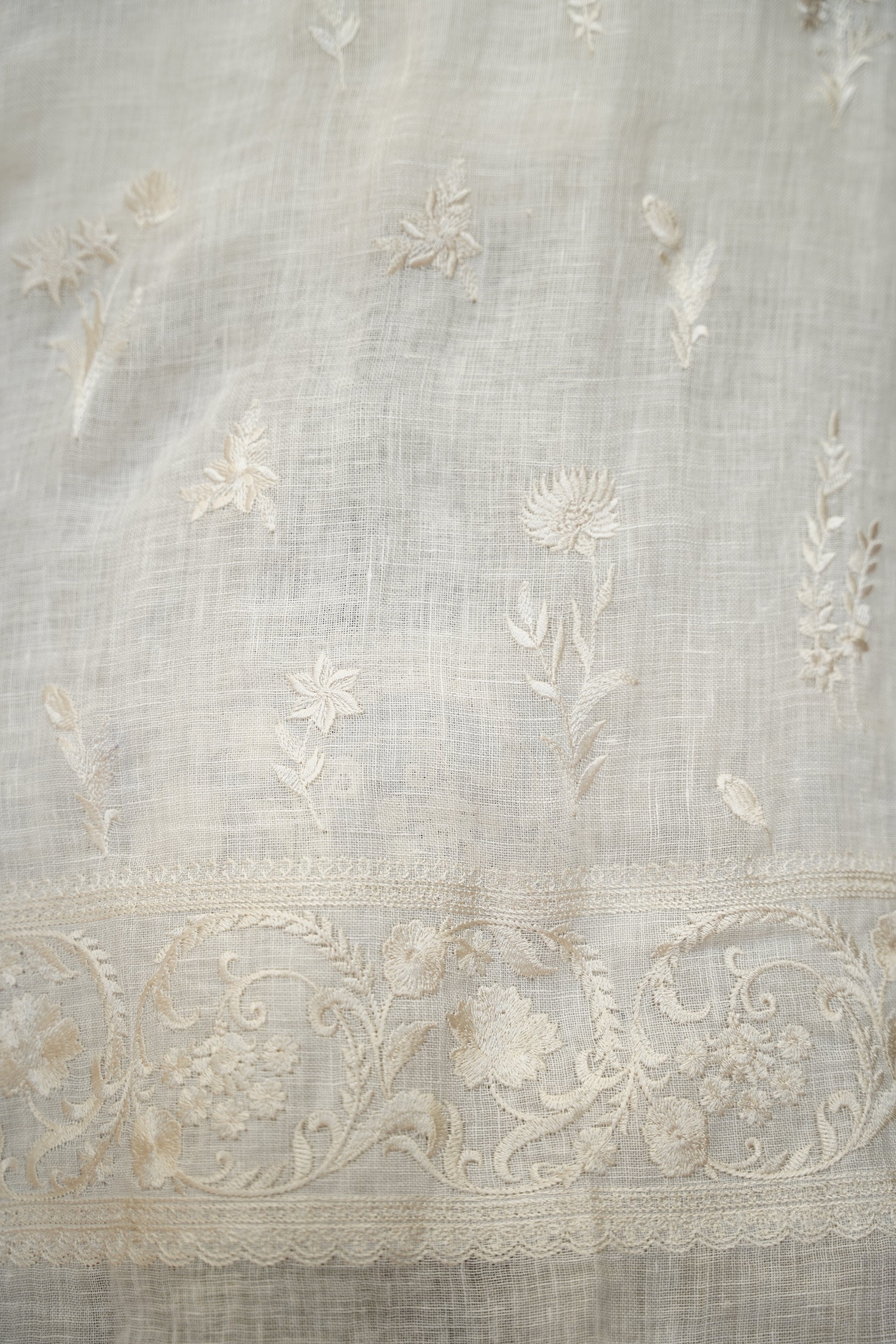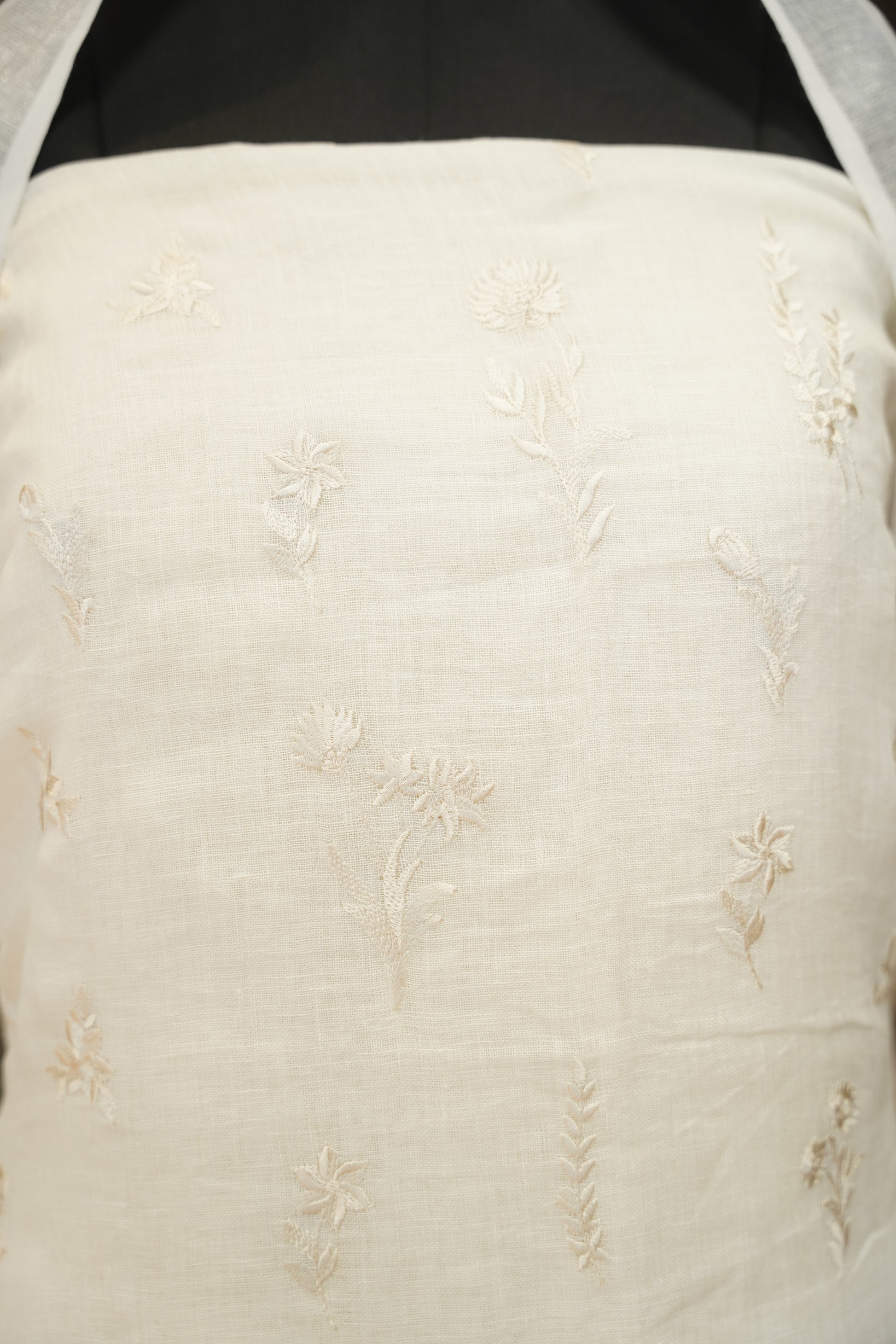 Stay cool and stylish with this white pure linen suit, featuring elegant embroidery. Soft, breathable, and unstitched—perfect for customizing your fresh, sophisticated look.