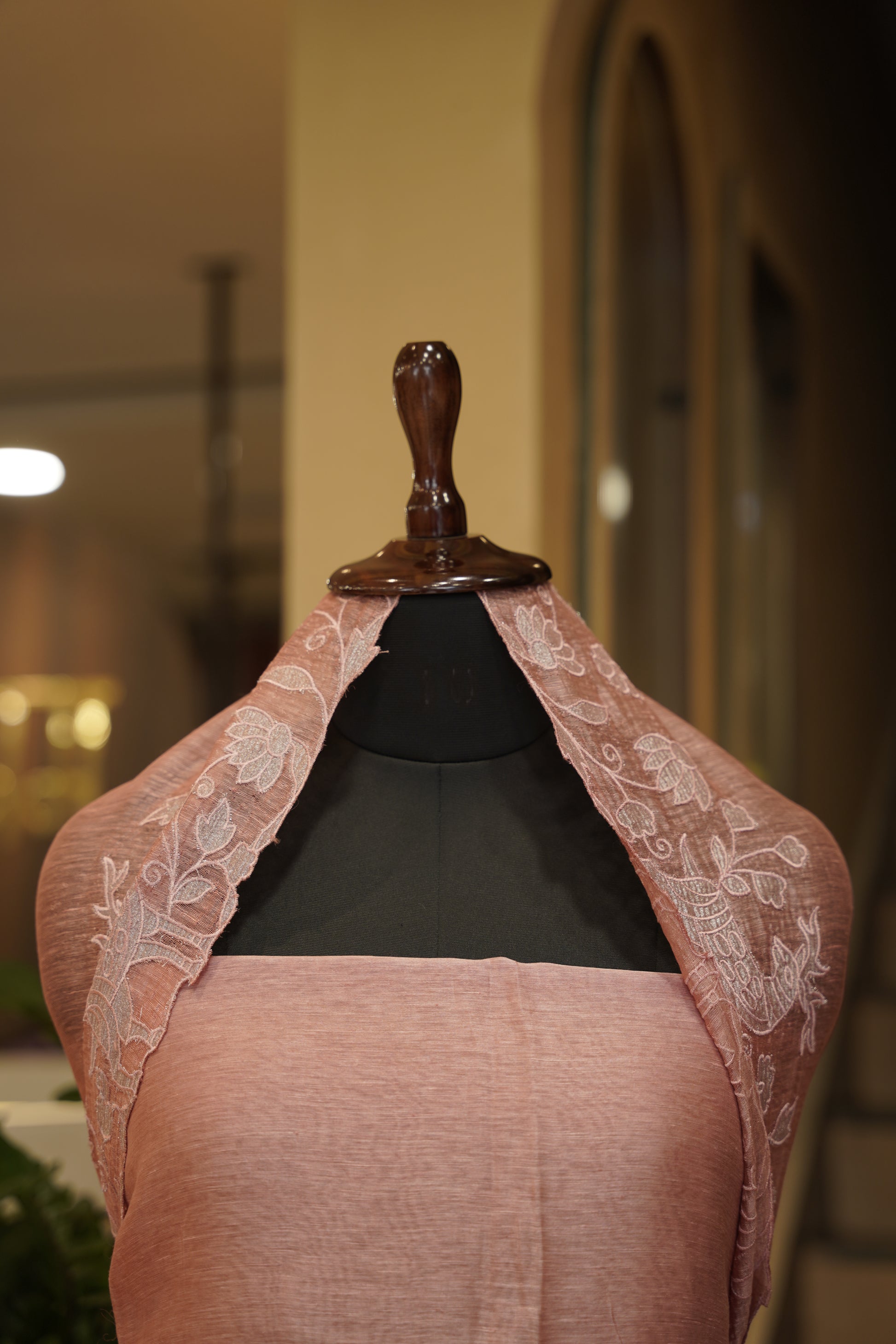Pink Silk Linen Suit with Appliqué Work