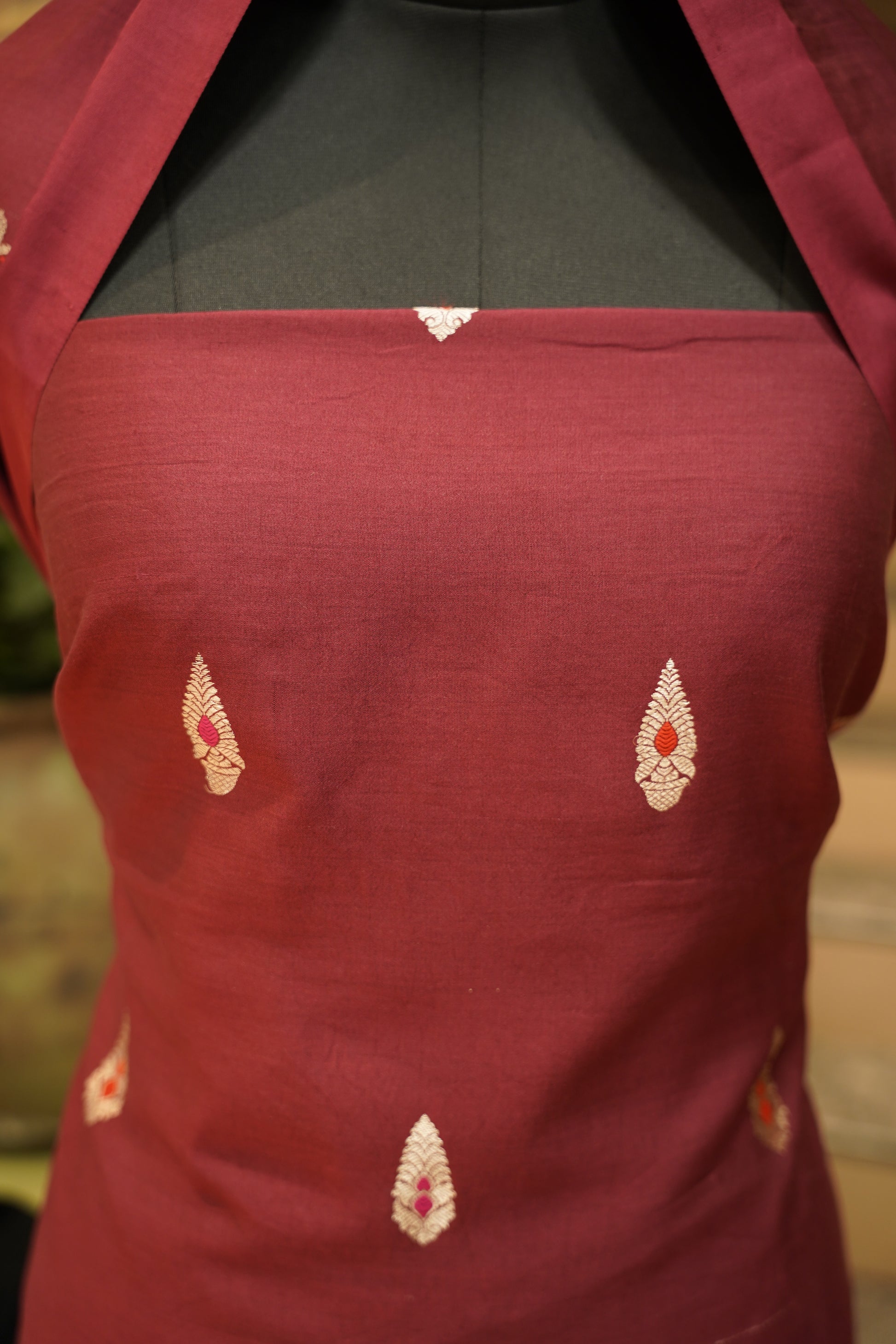 Mehroon Pure Chiniya Silk Banarasi Suit