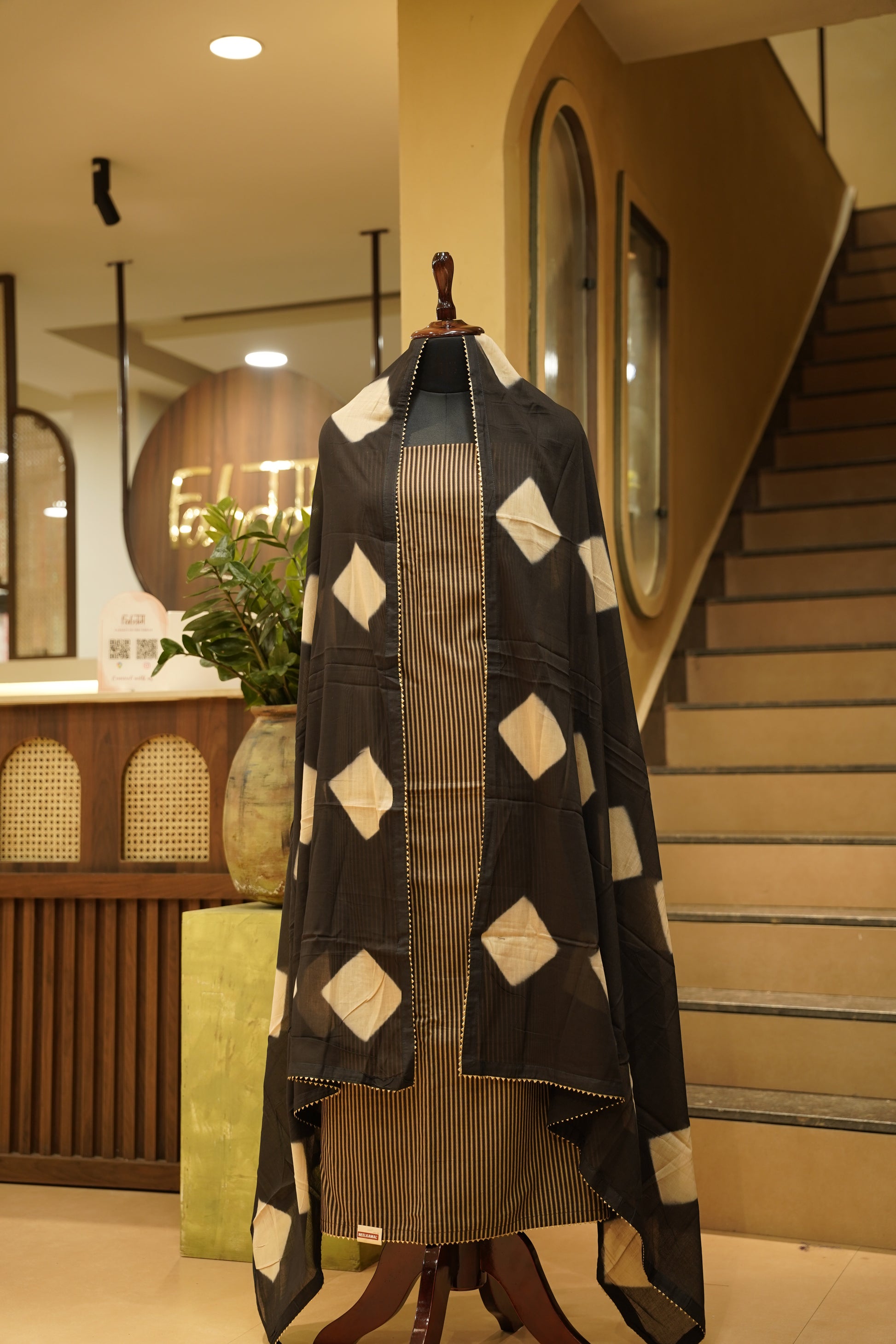 Classic and comfortable, this Black Cotton Printed Suit features subtle prints paired with a soft, breathable mul cotton dupatta. Perfect for casual wear or office days, this unstitched set offers effortless style and all-day comfor
