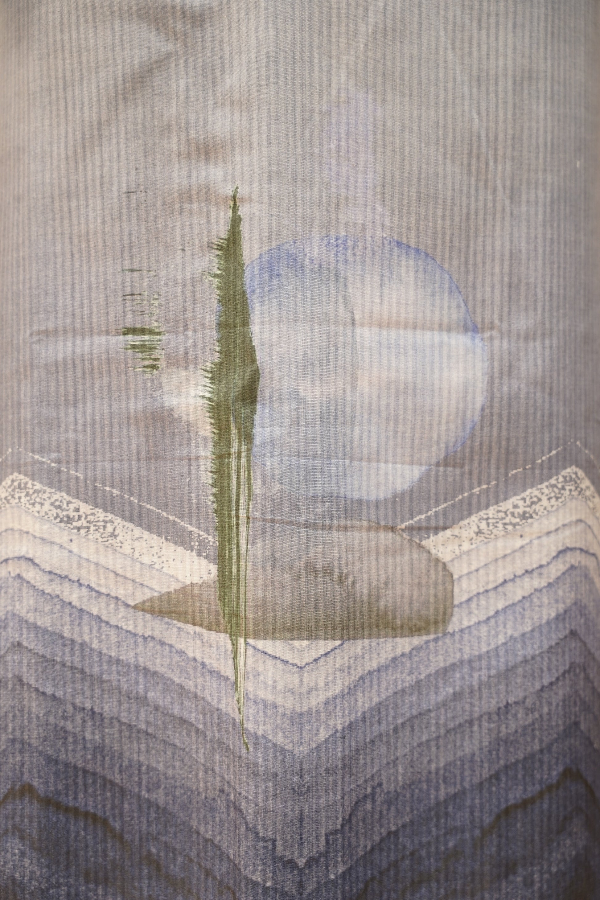 Blue Slub Linen Printed Suit with Mirror Neck Tie
