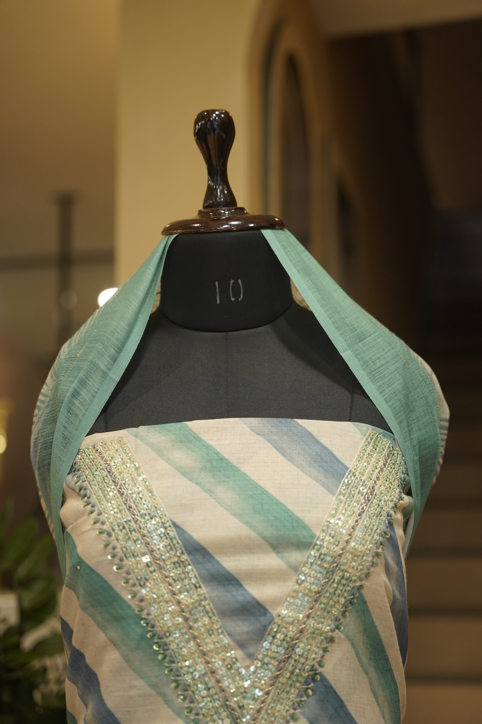 Embrace understated elegance with this 3-piece unstitched suit set crafted from premium cream slub linen. The suit features delicate neck embroidery work, paired with a beautifully printed dupatta and matching pants fabric. Perfect for both everyday grace and special occasions, this set offers comfort, style, and versatility in one timeless ensemble.