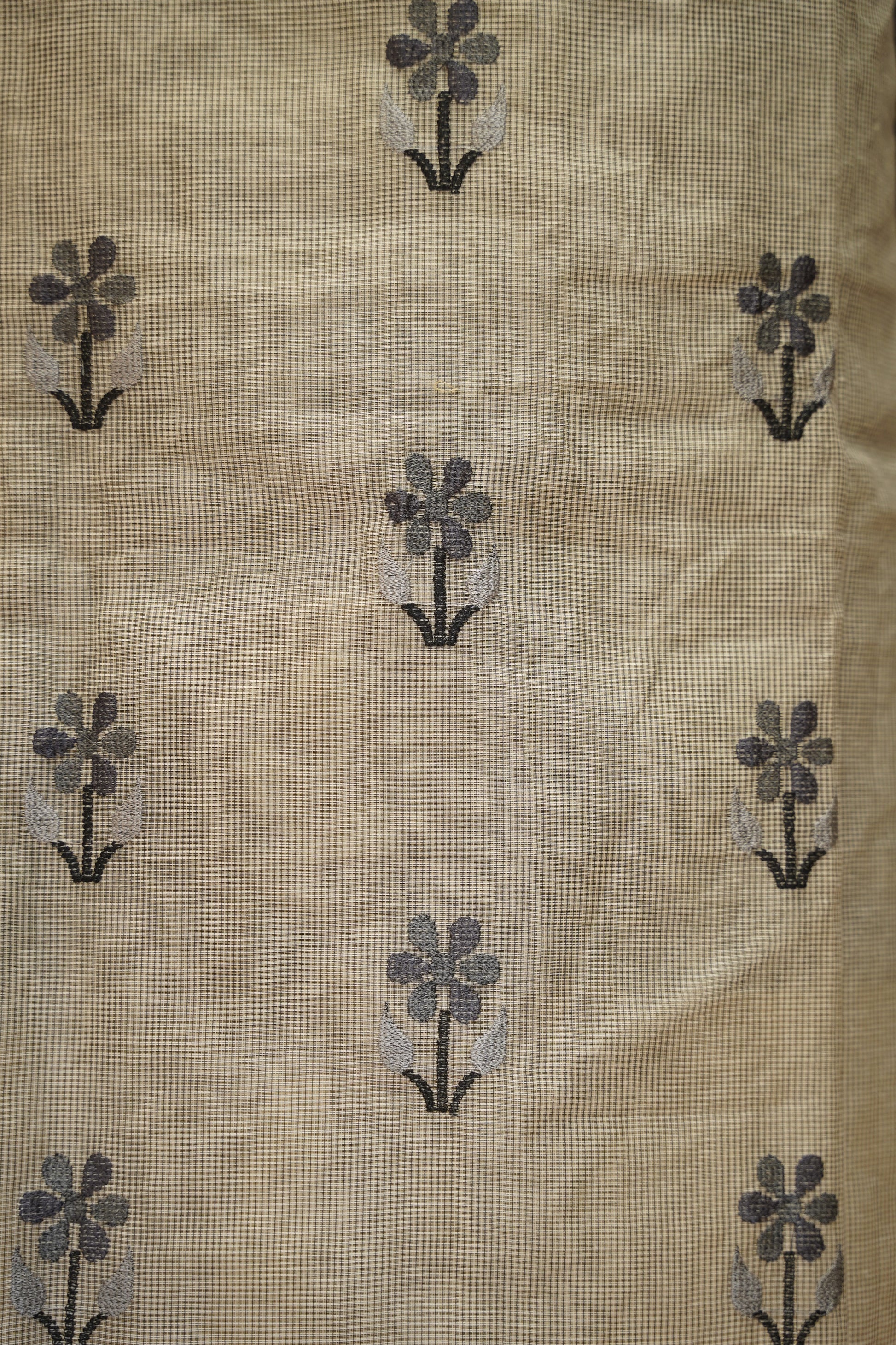 Add a touch of elegance to your wardrobe with this 3-piece unstitched suit set in a sophisticated grey hue, featuring a lightweight and breezy Embroidered Kota suit. It is beautifully complemented by a floral embroidered dupatta and matching pants fabric, making it a perfect choice for festive occasions or daytime gatherings. A graceful blend of tradition and style.